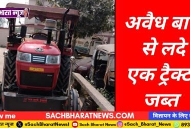 अवैध बालू से लदे एक ट्रैक्टर को पुलिस ने किया जब्त, चालक हुआ फरार।