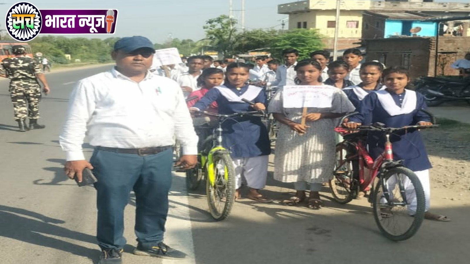 कोंच प्रखंड के गांधी इंटर उच्च विद्यालय में विश्व साइकिल दिवस के अवसर पर शनिवार को छात्र-छात्राओं द्वारा साइकिल रैली निकाली गई ।जिसमें प्रभारी प्रधानाध्यापक मनोज कुमार द्वारा हरी झंडी दिखाकर रवाना किया गया ।प्राप्त जानकारी के अनुसार विश्व साइकिल दिवस और आने वाले विश्व पर्यावरण दिवस के अवसर पर शनिवार को गांधी इंटर विद्यालय के सैकड़ों छात्र छात्राओं द्वारा विद्यालय परिसर से साइकिल रैली निकाली गई।जिसकी अगुवाई प्रधानाध्यापक मनोज कुमार के द्वारा किया गया। रैली विद्यालय से निकलकर बाजार का परिभ्रमण करते हुए वापस विद्यालय परिसर वापस पहुंचा। जहां बच्चों को साइकिल से होने वाले लाभ और इसका पर्यावरण पर क्या असर है इसके बारे में विस्तार से शिक्षकों द्वारा बताया गया।