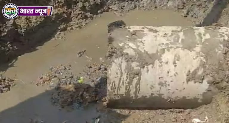 मिट्टी डालकर बैठाया जा रहा ह्यूम पाइप