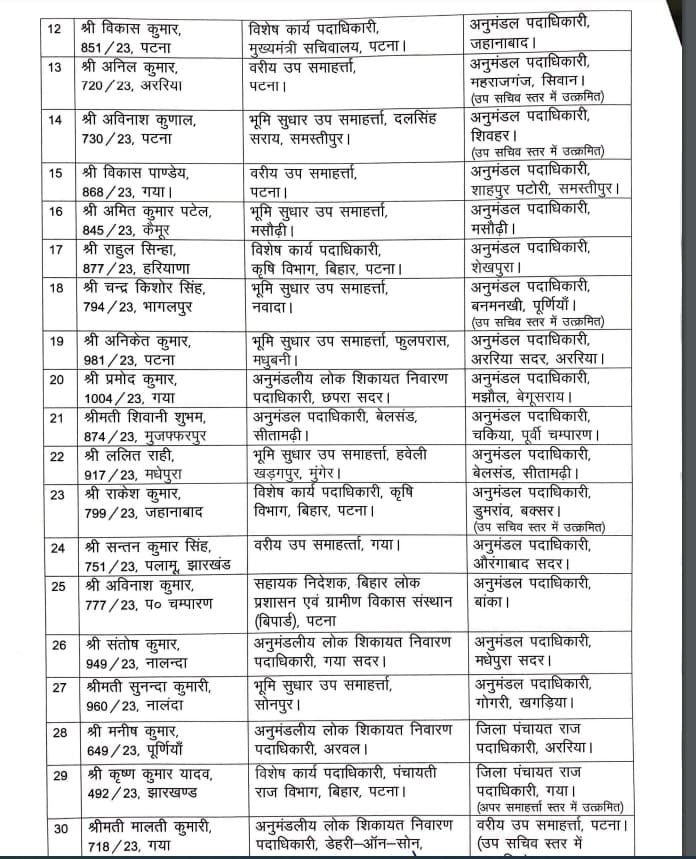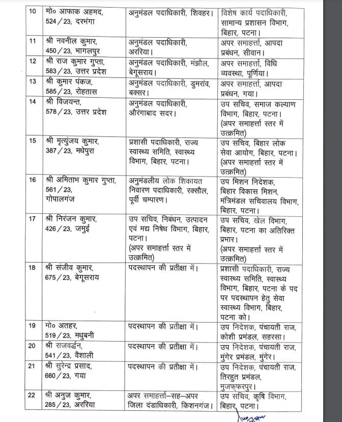 बिहार में बड़े पैमाने पर प्रशासनिक फेरबदल। March 4, 2024 Posted by By विकास कुमार ,निर्देशक सच भारत न्यूज 208 Views 6 IAS, 22 पुलिस पदाधिकारियों का भी तबादला, कई जिलों के बदले गए ADM। विकास कुमार ,निर्देशक सच भारत न्यूज March 4, 2024 Previous Article फतेहपुर में अपराधियो ने एटीएम से पैसा लूटने का किया प्रयास Next Article ब्रेकिंग न्यूज़ :- ट्रेन की चपेट में आने से एक व्यक्ति की मौत