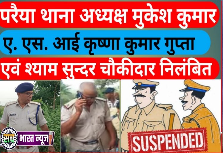 परैया थाना के अन्तर्गत सडक हादसे के शिकार हुए एक युवक के शव की पहचान करने में लापरवाही बरतने का मामला ने तुल्य पकड़ लिया है! शव की पहचान किए बिना उसे लावारिस घोषित कर अंतिम संस्कार कर दिया गया उसके बाद पता चला की शव शहर के करीमगंज मुहल्ले के रहने वाले गुलाम हैदर के बेटे मोहम्मद साहब का था। घटना के विरोध में आक्रोषित ग्रामीणों ने घंटो तक गहमागहमी महौल बना दिया पुलिस की कार्यशैली पर नाराजगी जताई इस मामले को डीएम डॉ त्यागराजन व एसएसपी आशीष भारती ने गंभीरता से लिया पूर्ण जांच के बाद परैया थाना अध्यक्ष मुकेश कुमार के द्वारा बर्ती गई लापावाही को लेकर परैया थाना अध्यक्ष मुकेश कुमार, ए. एस. आई कृष्णा कुमार गुप्ता एवं चौकीदार श्याम सुन्दर पासवान को निलंबित कर दिया गया है