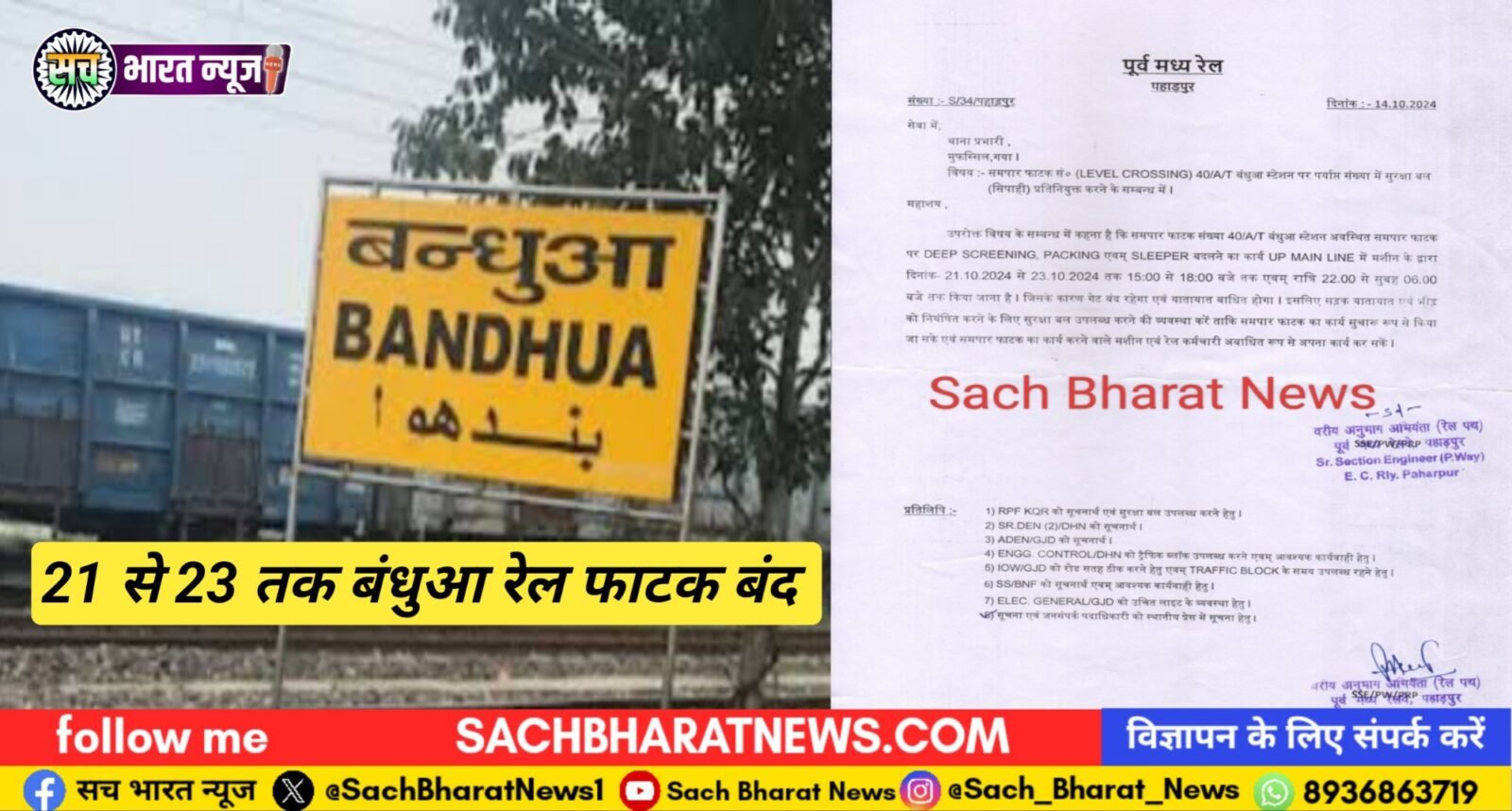 21 से 23 तक बंधुआ रेल फाटक बंद