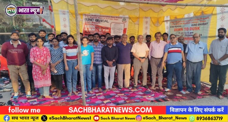 गया।कोलकाता में आमरण अनशन पर बैठे कनीय चिकित्सकों के साथ एकजुटता प्रदर्शित करने के लिए अनुग्रह नारायण मगध मेडिकल कॉलेज अस्पताल के कनीय चिकित्सक एवं मेडिकल छात्र एवं छात्राओं ने सूर्योदय से सूर्यास्त तक के लिए भूख हड़ताल किया।भूख हड़ताल पर बैठने वाले कनीय चिकित्सक और मेडिकल छात्र छात्राओं में (सूची सलंग्न) शामिल थे।उल्लेखनीय है कि कोलकाता के अभया कांड में न्याय और सुरक्षा के उचित व्यवस्था हेतु वहां के कनीय चिकित्सक अभी तक आंदोलन रत है और कनीय चिकित्सकों का एक जत्था पिछले 13 दिन से आमरण अनशन पर बैठा हुआ है,और कुछ चिकित्सको की स्थिति गंभीर हो गई है।इन संघर्षरत चिकित्सकों के साथ एकजुटता प्रदर्शित करने है इंडियन मेडिकल एसोसिएशन के राष्ट्रीय नेतृत्व के द्वारा पूरे भारत में सूर्योदय से सूर्यास्त तक के लिए कनीय चिकित्सकों के सूर्योदय से सूर्यास्त तक सामूहिक भूख हड़ताल के आह्वान के तहत इस सामूहिक भूख हड़ताल का आयोजन किया गया।सूर्यास्त के समय आईएमए बिहार शाखा के अध्यक्ष डॉ अभय नारायण राय एवं आईएमए गया शाखा के अध्यक्ष डॉ चौधरी लक्ष्मी नारायण ने फलों का रस दे कर भूख हड़ताल समाप्त करवाया गया।इस अवसर पर आईएमए बिहार शाखा के उपाध्यक्ष डॉ एल एम सिंह,आईएमए गया के उपाध्यक्ष डॉ वी वी सिंह,डॉ. सूरज प्रकाश,डॉ.शिवम,डॉ. डिम्पल,डॉ गरिमा,डॉ. कुश , डॉ.प्रभात आस्तिक कुमार,आदित्य शर्मा,अपूर्व कृष्ण, कुणाल कुमार,प्रतीक राज,राज आर्यण,शाश्वत सुमन,सनोज,विक्रांत, अमित कुमार, सहित अन्य मौजूद थे।