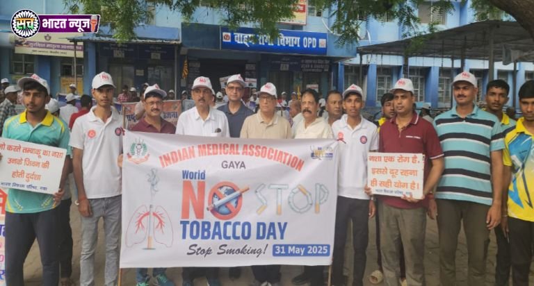 गया।भारतीय चिकित्सा संघ गया शाखा ने ब्रह्माकुमारी ईश्वरीय विश्वविद्यालय और जिला स्वास्थ्य विभाग के सहयोग से विश्व तम्बाकू निषेध दिवस पर एक रैली का आयोजन किया। यह रैली आइएमए भवन गया से प्रारंभ हुआ और शहर के मुख्य सड़कों से होते हुए जेपीएन अस्पताल गया में समाप्त हुआ। रैली के प्रारंभ में आइएमए अध्यक्ष डॉ अशोक कुमार सिंह, सचिव डॉ विमलेंदु विमल, गैर संचारी रोग पदाधिकारी डॉ एम ई हक ने संयुक्त रूप से हरी झंडी दिखा कर रैली को रवाना किया। रैली में आइएमए गया के डाक्टर गण,ब्रहमाकुमारी के सफेद वस्त्र धारी कार्यकर्ता, सामाजिक संस्था भारत विकाश परिषद, वर्क और गया कॉलेज, ए० एम०कॉलेज और जगजीवन कॉलेज के एन० एस० एस० से जुड़े छात्र भी शामिल हुए और नशा निवारण संबंधी तख्तियां और नारे लगाते हुए रैली को संपन्न किया। रैली के समापन के बाद जेपीएन अस्पताल के सभागार में एक नशा मुक्ति जागरूकता कार्यशाला का आयोजन किया गया। ब्रह्माकुमारी संस्था के संयोजक श्री बी के संजय ने कार्यशाला का संचालन किया। श्री संजय ने खैनी और गुटका के