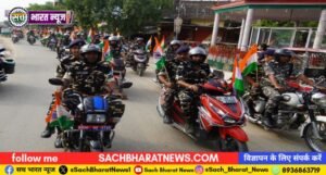 नरकटियागंज। 79वें स्वतंत्रता दिवस के उपलक्ष्य में आज़ादी का अमृत महोत्सव कार्यक्रम के अंतर्गत 44वीं वाहिनी सशस्त्र सीमा बल नरकटियागंज द्वारा “हर घर तिरंगा” अभियान के तहत एक भव्य मोटरसाइकिल तिरंगा रैली का आयोजन किया गया। इस कार्यक्रम का नेतृत्व कमांडेंट श्री बलवंत सिंह नेगी द्वारा किया गया।इस रैली का मुख्य उद्देश्य भारत की स्वतंत्रता के 79 वर्षों के गौरवमयी इतिहास एवं स्वतंत्रता संग्राम सेनानियों की उपलब्धियों को जन-जन तक पहुंचाना और देशभक्ति की भावना को प्रोत्साहित करना रहा।रैली का शुभारंभ 44वीं वाहिनी मुख्यालय से हुआ और यह ऐतिहासिक स्थल रामपुरवा अशोक स्तंभ तक 20 किलोमीटर की दूरी तय करते हुए विभिन्न ग्रामीण क्षेत्रों और स्कूलों से होकर गुज़री। इस दौरान आम नागरिकों और विद्यार्थियों को देशभक्ति के प्रति जागरूक किया गया।रैली के मार्ग में नरकटियागंज शहीद चौक, नरकटियागंज चौक, पचरुखिया, पिपरा, अमौलवा, भितिहरवा, भतौरा, मेघौली, वेलवकोठी, बहुहारी, पिपरहा एवं रामपुरवा महादलित टोला जैसे क्षेत्रों को शामिल किया गया और समापन पुनः 44वीं वाहिनी मुख्यालय पर हुआ।