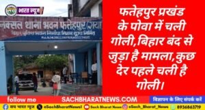 फतेहपुर प्रखंड के पोवा गांव निवासी भूषण सिंह के घर पर चली गोली। बिहार बंद से जुड़ा है मामला। घटनास्थल पर पहुंच चुकी है पुलिस। मिली जानकारी के अनुसार बिहार बंद के दौरान हुई थी झड़प। शाम को चली गोली। जांच में जुटी पुलिस।