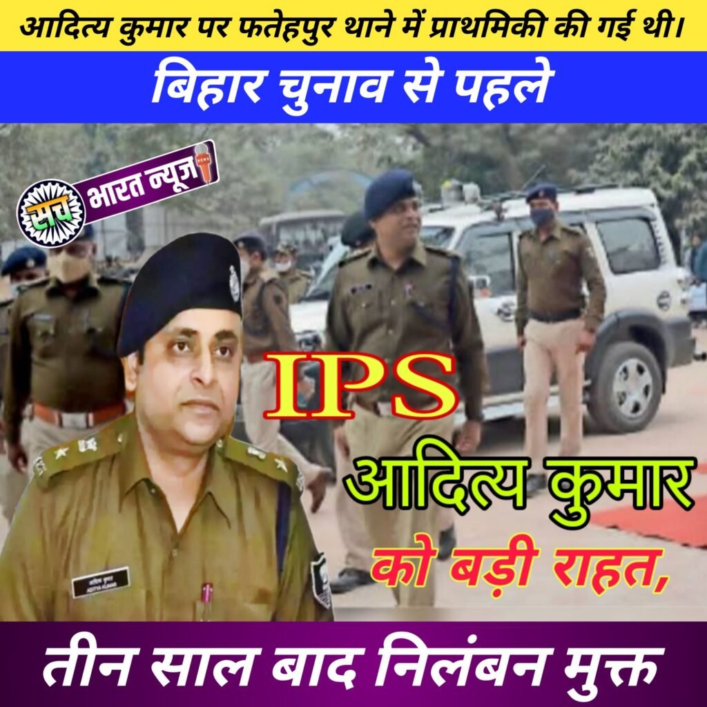 :- तीन साल बाद बड़ी राहत: IPS आदित्य कुमार का निलंबन समाप्त, सेवा में बहाली।