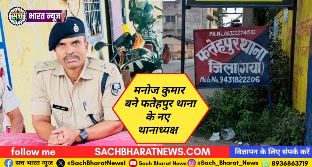 (गया): फतेहपुर थाना के नए थानाध्यक्ष बने मनोज कुमार इससे पूर्व वे गया जी जिले के यातायात थाना में पदस्थापित थे, जहाँ उन्होंने कुशल प्रशासनिक कार्य और अनुशासन के साथ अपनी सेवाएँ दीं।