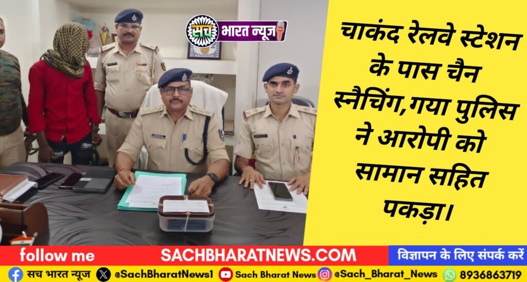 वरिष्ठ पुलिस अधीक्षक, गया के निर्देशानुसार चलाए जा रहे प्रिवेंटिव पुलिसिंग अभियान के तहत पुलिस को गुप्त सूचना मिली कि चाकंद रेलवे स्टेशन के पास एक युवक महिला के गले से लॉकेट झपटकर फरार हो गया है। सूचना मिलते ही चाकंद थाना अध्यक्ष के नेतृत्व में पुलिस टीम ने तत्परता दिखाई और आरोपी को पीछा कर मौके पर ही धर दबोचा।