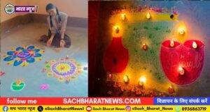 रंगोली, चित्रकला और उल्लास से सजी दीपावली की पूर्व संध्या