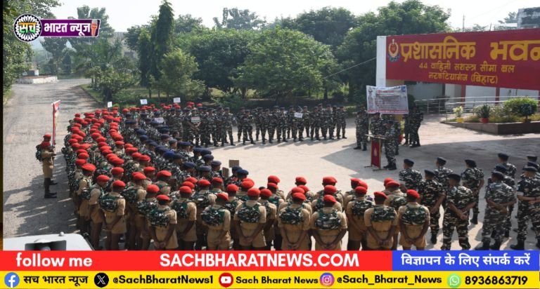 नरकटियागंज। 44वीं वाहिनी सशस्त्र सीमा बल, नरकटियागंज में राष्ट्रगीत वंदे मातरम् की 150वीं वर्षगांठ अत्यंत श्रद्धा और उल्लास के साथ मनाई गई। इस अवसर पर द्वितीय कमान अधिकारी गोविन्द कुमार ठाकुर की अध्यक्षता में कार्यक्रम का शुभारंभ हुआ। उपस्थित सभी अधिकारियों, जवानों, नवप्रशिक्षुओं एवं बच्चों ने एक स्वर में वंदे मातरम् का सामूहिक गायन कर मातृभूमि के प्रति अपनी असीम श्रद्धा व्यक्त की।