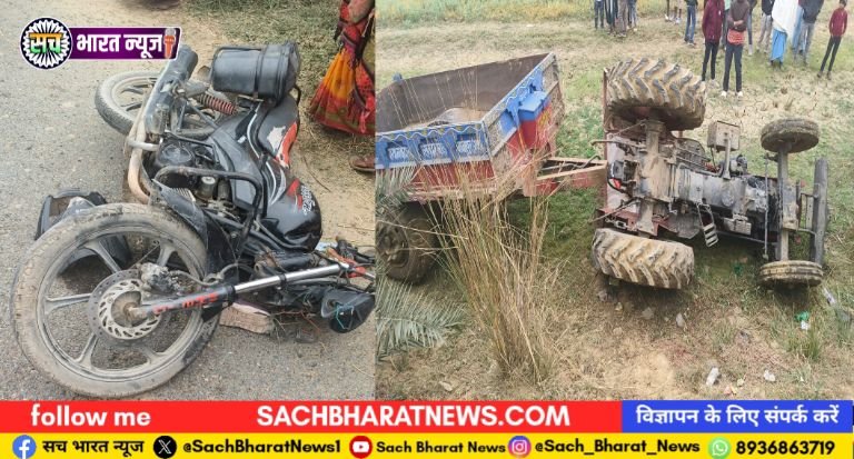 फतेहपुर में ट्रैक्टर-बाइक की टक्कर, महिला की मौत, पति गंभीर घायल