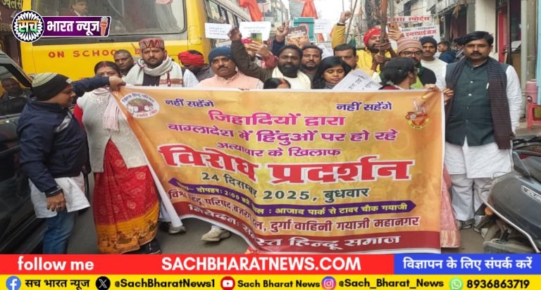 नंदकिशोर गुप्त ने कहा कि इसी के तहत विश्व हिंदू परिषद द्वारा देशव्यापी विरोध प्रदर्शन किया जा रहा है और गयाजी में भी हिंदू समाज के आह्वान पर यह आक्रोश मार्च निकाला गया। उन्होंने भारत सरकार से मांग की कि बांग्लादेश पर कठोर से कठोर कार्रवाई की जाए और वहां रह रहे हिंदुओं की सुरक्षा सुनिश्चित की जाए।इस विरोध प्रदर्शन में विश्व हिंदू परिषद, बजरंग दल, दुर्गावाहिनी, मातृशक्ति, राष्ट्रीय स्वयंसेवक संघ, हिंदू जागरण मंच, विद्यार्थी परिषद सहित विभिन्न हिंदू संगठनों के कार्यकर्ता शामिल हुए। कार्यक्रम में डॉ. नंदकिशोर गुप्त, सूरज प्रताप, डॉ.जगदीश शर्मा, प्रेमनाथ टाइयां, राजीव सिंह, आशीष अग्रवाल, दीपक पांडेय, विकाश भदानी, शंभु केशरी,रोहित, शुभम, नवीन, दिवाकर, मंजूषा वेशकियार, सुनीता अग्रवाल, निर्मला अग्रवाल, उषा आर्य, शिल्पा भदानी, रेखा रानी, वीगन विश्वकर्मा, मणिलाल बरिख, ऋषिकेश गुर्दा, विक्रम गुर्दा, राणा रंजीत सिंह, टिंकू गोस्वामी, अजय राजू, मंजीत सिंह, कमल बरिख, संतोष पाठक, राकेश, शम्भू यादव, शम्भू केसरी, चंदन भदानी सहित सैकड़ों की संख्या में हिन्दू समाज के लोग उपस्थित रहे।