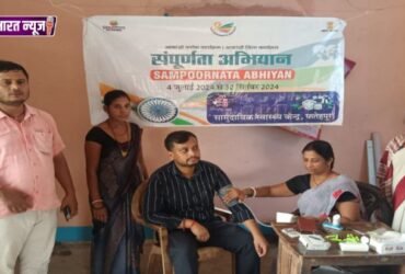 सम्पूर्णता अभियान अंतर्गत शिविर का आयोजन कर ग्रामीणों को किया जा रहा है रक्तचाप एवं मधुमेह की जाँच।