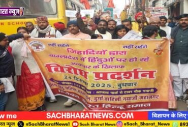 बांग्लादेशी हिन्दू युवक दीपुचन्द्र दास की हत्या के विरोध में गयाजी में विश्व हिंदू परिषद, बजरंग दल का आक्रोश मार्च, पीएम यूनुस का पुतला दहन