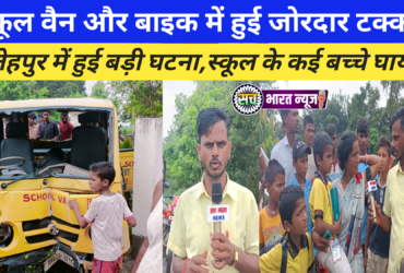 स्कूल वैन और बाइक में हुई जोरदार टक्कर, बाइक सवार समेत स्कूल के कई बच्चे हुए घायल