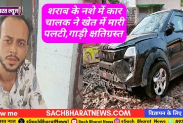 शराब के नशे में कार चालक ने खेत में मारी पलटी,गाड़ी क्षतिग्रस्त
