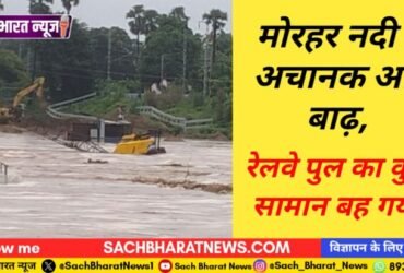 मोरहर नदी में अचानक आई बाढ़, रेलवे पुल का कुछ सामान बह गया।