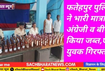 फतेहपुर पुलिस ने 203 बोतल अंग्रेजी शराब व 30 बोतल बीयर किया जब्त, बाइक के साथ युवक गिरफ्तार